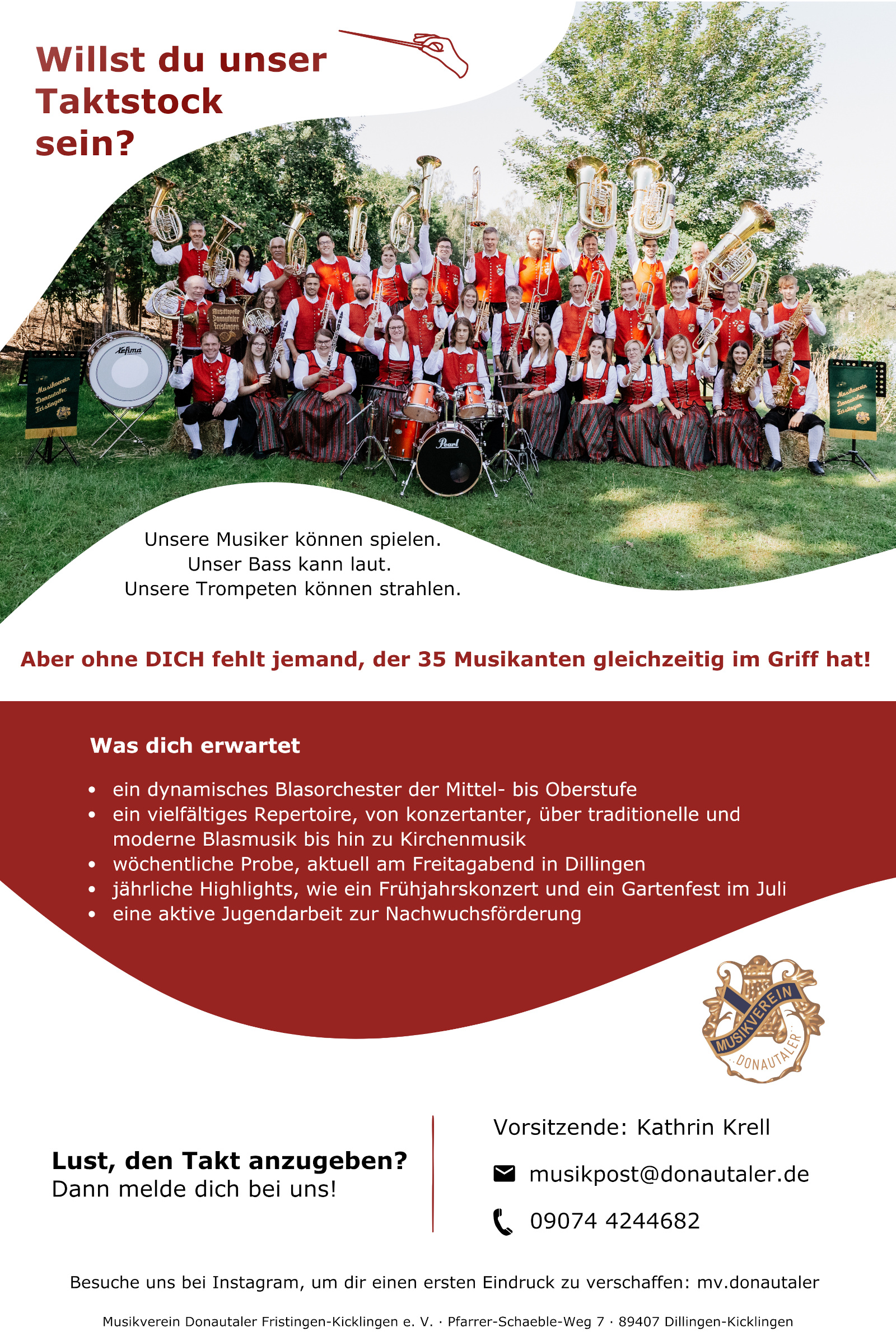 Zur feierlichen Einstimmung auf die Erstkommunion in Kicklingen begrüßten die Donautaler die Erstkommunionkinder und ihre Familien mit einem Standkonzert. Aufgrund des regnerischen Wetters wurde dieses kurzerhand in die Kirche verlegt. Der traditionelle Umzug vom Pfarrgarten zur Kirche zur Begleitung der Kommunionkinder konnte dank einer kurzen Regenpause dennoch stattfinden.